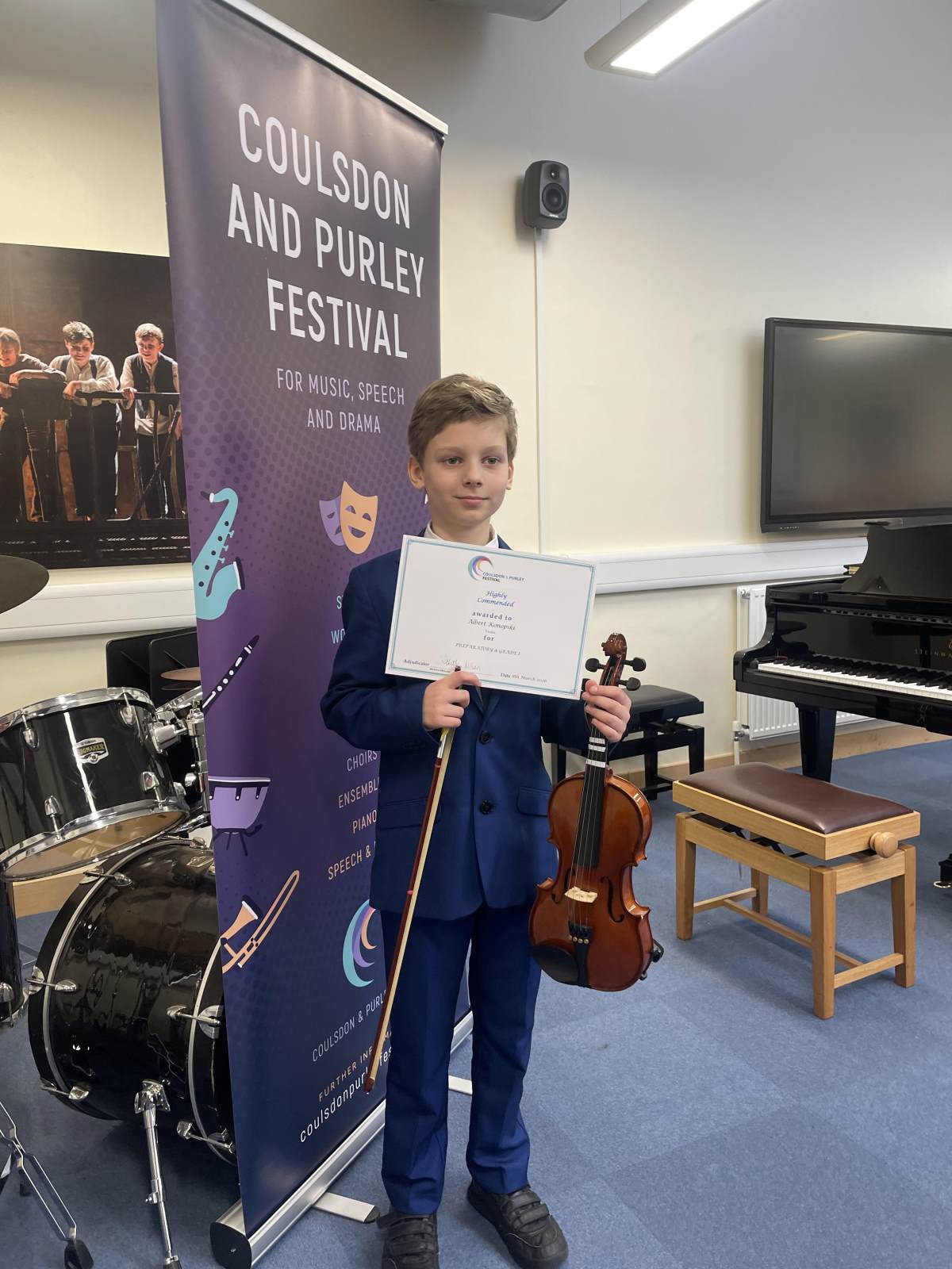 Albert K played the violin at the Coulsdon and Purley Festival at Trinity College. He had a very enjoyable experience.